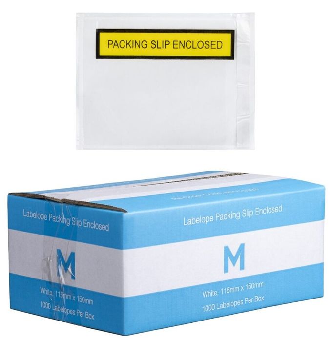 S771 is a packing slip enclosed labelope designed for shipping. It features hot melt rubber adhesive for strong adhesion, is waterproof, and has black & yellow print for visibility. Suitable for retail, courier, and freight industries. Made of clear and white LDPE with hot melt rubber adhesive and kraft (white) with full-face silicone coating. 1000 PER PACK