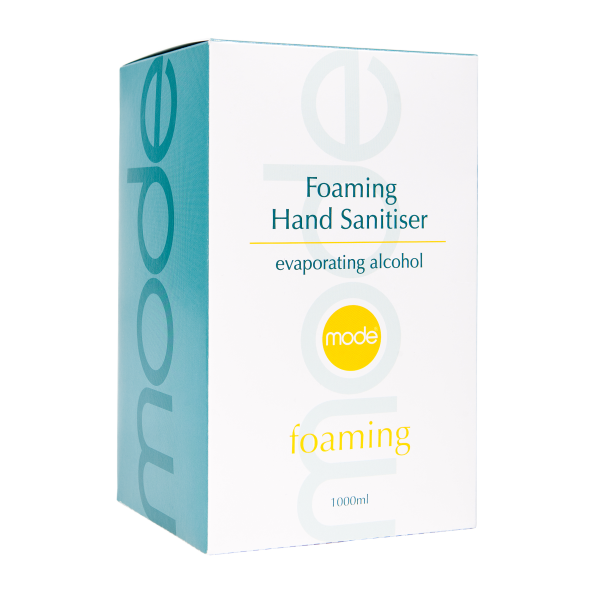 MODE FOAMING HAND SANITISER 1000ml is an instant thick foam which quickly and easily rubs into the skin. Non sticky. Thick rich foam. Excellent after-feel. Contains moisturisers. Contains NO Silicones. APPLICATIONS MODE FOAMING HAND SANITISER is formulated to evaporate and leave hands dry and sanitised, without use of a towel or air dryer, in schools, restaurants, hotels, food processing plants