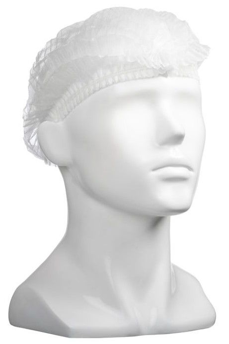 Disposable, non-woven polypropylene hats for use in food processing and manufacturing industries.