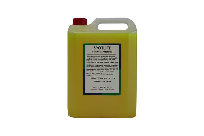 Spotlite is a biodegradable dishwashing detergent with a lemon fresh fragrance. Ideally suited for cafes, restaurants or your home kitchen. Contains coconut oil derivative as a hand softener. Spotlite is easy on your budget and tough on grease and grime.