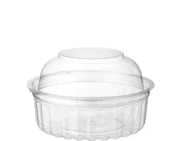 Castaway® food bowls feature exceptional clarity and durability. Air-tight lids ensure freshness, and a double-split hinge allows containers to be laid open on a bench for quick and easy filling. Multiple sizes are available, with flat or dome lids offering extra space for fresh food applications and bakery items. Applications: Salads, fresh foods, biscuits, cakes, nuts and sweets 25 per Sleeve 10 Sleeves Per carton SOLD BY SLEEVE