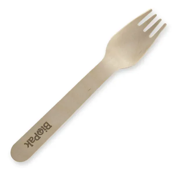 Our 16cm coated wooden fork is made from sustainably sourced FSC™ 100% certified birchwood. Our coated cutlery range has been coated with a food safe, non-toxic, compostable plant-based carnauba wax. This disposable fork is compostable. A more eco-friendly alternative to plastic forks. Naturally better! BioPak wood cutlery is made from FSC™ 100% certified Birchwood. Forest Stewardship Council™? is the industry benchmark for sustainably managed wood and wood products. Our wooden cutlery range produce zero net carbon emissions! This is because the trees used to make our cutlery store carbon while they grow and the majority of this remains in the product even after you've finished using it – enough to offset all the emissions released from manufacturing, transportation, and disposal. This disposable cutlery range includes wood knives, wood forks, wood spoons, wood teaspoons, wood stirrer sticks, wood sporks, wood cutlery sets and wood chopsticks. Our wooden cutlery range comes in coated and uncoated options. Our coated range has been coated with a food-safe, non-toxic, compostable plant-based carnauba wax. Our beautifully crafted birchwood cutlery is a stylish, affordable, eco-friendly cutlery choice for your next picnic, office or dinner party, special event, wedding, or cafe or restaurant. Wood cutlery is suitable for home and industrial composting. They will biodegrade and will not HY-16F-COATED Sleeves per carton: 10 Units per sleeve: 100