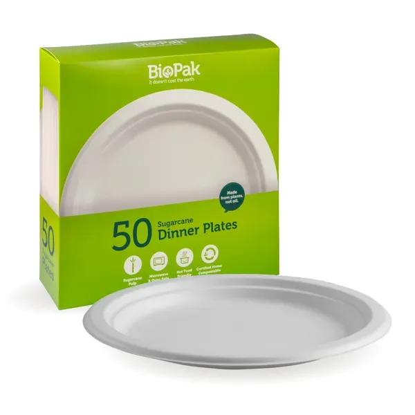 - Biopak 50 Pack / 25cm White BioPlates 250 units per ctn