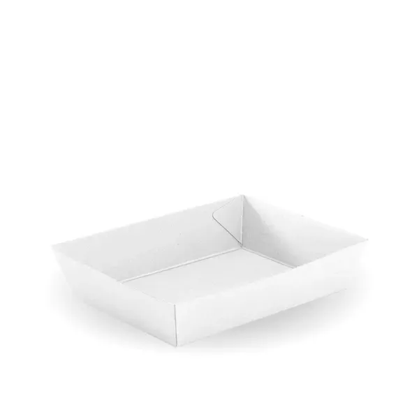Our unlined cardboard trays are made from FSCâ„¢ recycled paper. Each BioPak white paper food tray is home-compostable. Cardboard tray box #3 is 180 x 134 x 45mm and also available in kraft. BioBoard Trays are made from FSCâ„¢ Recycled certified paper which means the forest-based material in this product is recycled. Recycled is more eco-friendly from a material point of view: no tree has been cut, it's re-using resources, and it fits in the circular economy. These paper food trays are suitable for composting and recyclable in kerb-side recycling, if not too soiled. Our BioBoard range has a 12-month shelf-life from date-of-purchase. BB-TRAY3-W Sleeves per carton: 2 Units per sleeve: 125