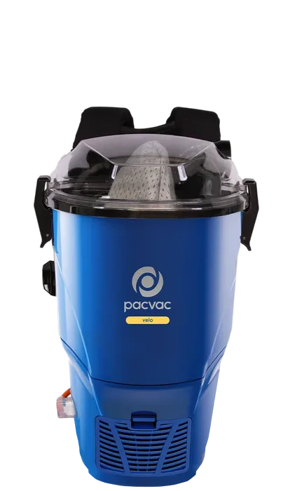 Small and mighty Powerful enough to tackle large commercial cleans, small enough to get into tight spaces, Velo is a versatile cleaning tool for both professionals and those wanting to achieve a professional quality clean at home. The corded Velo is amongst the lightest backpack vacuums on the market, delivering strong suction power driven by the 900W motor in a compact, lightweight machine weighing just 3.9kg. Velo comes standard with our Ecoharness, featuring thicker padding for a more comfortable fit. Made from at least 50% rPet (recycled polyethylene terephthalate), Pacvac is proud to offer the Ecoharness made from recycled plastic water bottles as part of their commitment to a more sustainable product offering. Velo is equipped with an H13 HEPA Hyperconeâ„¢ filter, providing four stages of filtration and effectively filtering out 99.95% of 0.3 micron sized dust particles to provide cleaner air for your environment. This backpack machine is the first within our range to offer a water resistant on-off switch at the base of the machine, and comes with the All purpose floor tool (FLT001) in the box - an industry favourite!
