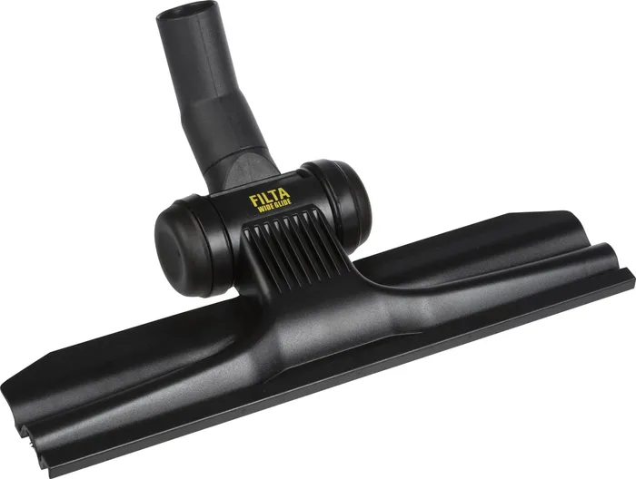 FILTA's Wide Glide is highlighted as a high-performance cleaning tool suitable for various surfaces and vacuum types, offering faster cleaning and improved pickup efficiency. The Wide Glide is a revolutionary cleaning tool that cleans 25% faster than a regular-sized floor tool. It features an extra-wide head, measuring 360mm, which provides superior pickup on all surfaces. The Wide Glide also features a unique lip seal in the pivot joint to prevent loss of suction and improve pickup. Additionally, a rubber bumper bar protects skirting boards from marks. It is recommended for commercial cleaners and is effective on any surface type and is suitable for homes with pets. " It is suitable for vacuums with a 32mm connection.