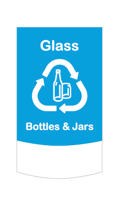 The blue/glass Trust label fits perfectly on the front of the Trust Square 87L Recycling Bin. These labels with help catch guests' attention so designating the container as recyclables, trash, plastic, etc. is easy for any workplace