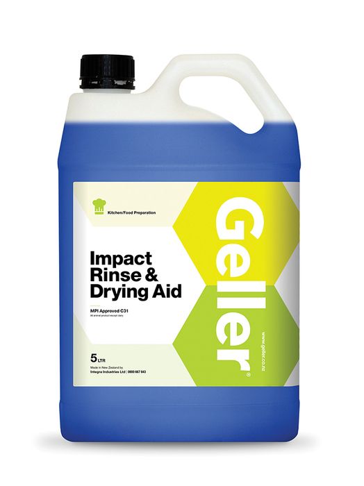 Geller Impact Machine Dishwashing Rinse Aid is a drying agent which dramatically reduces the drying time of machine washed articles & improves the finished appearance of crockery, glassware & cutlery by eliminating water spotting. Impact Rinse Aid is formulated especially for use with Automatic Dispensing Equipment.