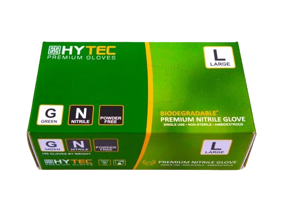- Hytec Green Large Nitrile BioDegradable Gloves 100pk