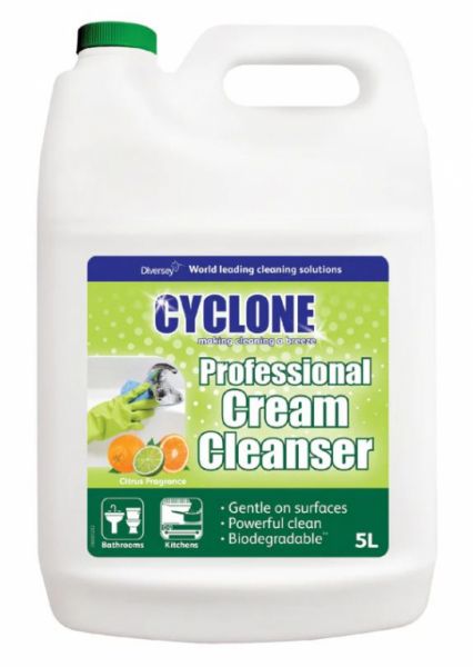 Cyclone Professional Cream Cleanser Citrus, is a non-abrasive cream cleanser with a fresh fruity citrus fragrance. The professional formulation cleans deep down with no harsh scratching and is gentle on surfaces. Perfect to keep your bathrooms and kitchens sparkling. Gentle on surfaces Powerful clean The surfactants are readily biodegradable according to Australian Standard AS4351