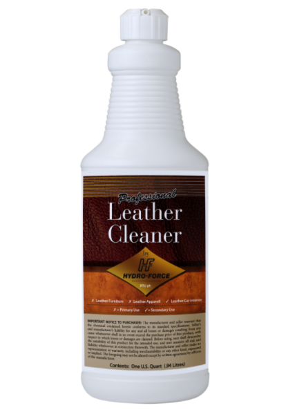 Hydro-Force Professional Leather Cleaner is specially formulated to deep clean even the most stubborn dirt, soil, and spills from protected and aniline leather. It meets or exceeds the performance standards of leading Italian leather cleaners with a more economical price. It is easy to apply and easy to use. It works effectively on soils, spots and spills without the use of damaging and harsh chemicals that dry and stiffen leather. It gets deep into the grain of the leather and emulsifies, dissolves, and deflocculates dirt and oil that builds up over time. It is pH balanced specifically for fine leather and will not damage your protective finish. It is the perfect leather cleaner for your customer's fine upholstered leather furniture, but can also be safely and effectively used on auto leather, leather jackets, luggage, handbags, and more. Hydro-Force Professional Leather Cleaner will remove many common household spots and spills from protected leather. Dilution Ratios: RTU RTU pH: 7 Contains: 1 quart