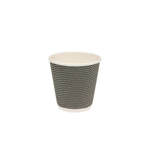 Clearance Item With a triple wall construction these multilayer cup is a mix of great value and performance. PE lined. Key Benefits: Great value Bold black & white print ripple texture for comfort and ease of grip