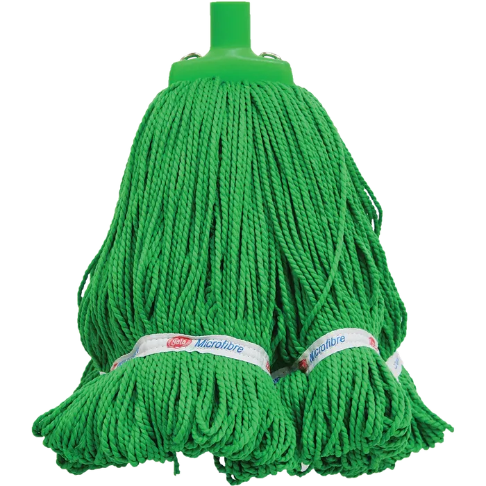 Filta Gala Microfibre Mop Heads have a round shape and are made with microfibre yarn. The yarn is looped to minimise tangling and linting and the round skirt shape gives maximum floor coverage, for an efficient clean. They are HACCP colour coded to prevent cross-contamination and can be used with or without chemicals. The Filta Gala microfibre mop head weighs 400g. With Looped microfibres minimise linting and tangling. The Round skirt shape provides maximum floor coverage. Cross contamination is minimised as they are colour coded. Suitable for use with or without chemicals.