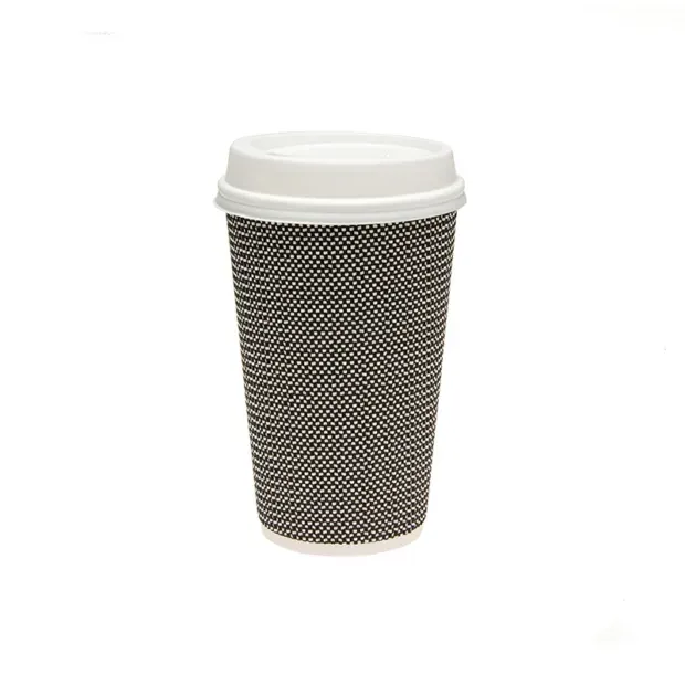 Clearance Item With a triple wall construction these multilayer cup is a mix of great value and performance. PE lined. Key Benefits: Great value Bold black & white print ripple texture for comfort and ease of grip