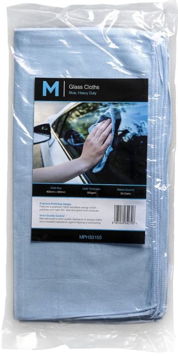Professional grade glass cleaning cloths are ideal for cleaning windows, mirrors and hard polished surfaces such as stainless steel and other shiny metal surfaces. The cloth is to be used dry or damp with water and no chemicals. It cleans without leaving lint or streaks. 10 cloths per pack