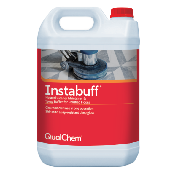INSTABUFF 5L is a red coloured liquid cleaner maintainer. A new concept in non build-up floorcare which cleans, disinfects and shines in one operation. PRODUCT FEATURES Ensures no build-up and no permanent inclusion of dirt into the floor finish. Cleans and shines in one operation. Contains a bactericide. Shines to a deep gloss. Can be applied either by a mop-buff or spray-buff system. APPLICATIONS INSTABUFF is mild and safe to use on Instashine and Instagloss floor coatings. May be used in conjunction with polymer dressings on quarry tiles, slate etc. It can be applied by either a mop buff, spray buff operation or automatic scrubbing.